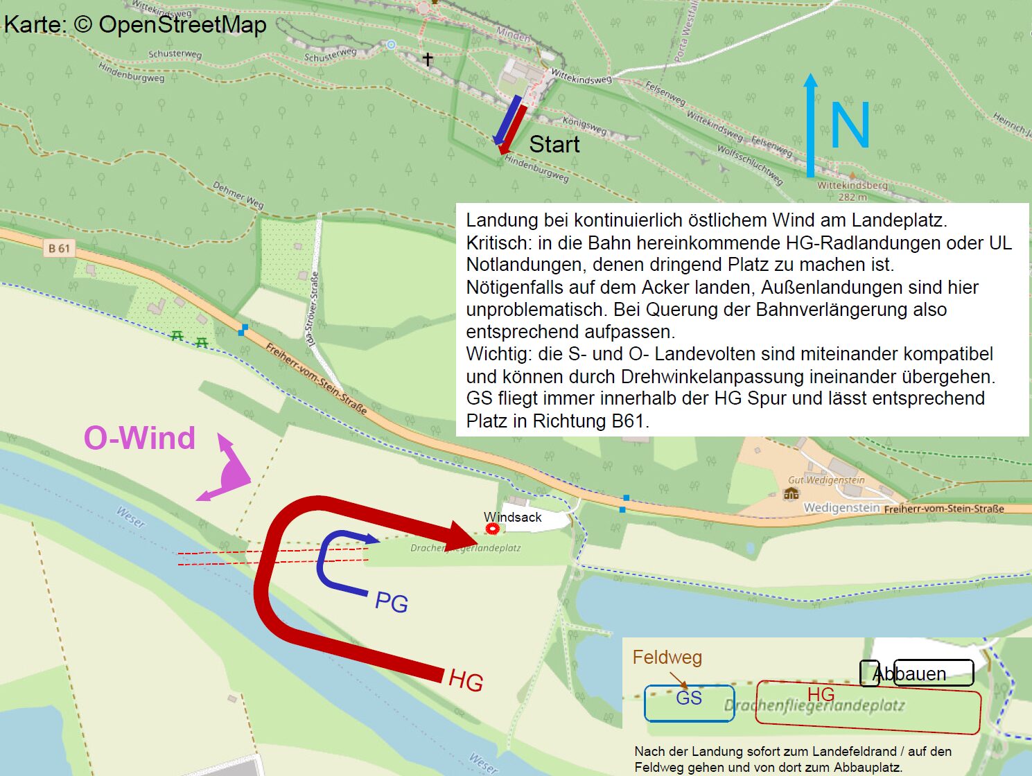 Bei den Landevolten ist immer darauf zu achten, dass alle Piloten sich vorhersehbar für andere Luftraumnutzer verhalten und Niemand gefährdet wird. Drachen und UL benötigen einen ziemlich exakten und ungestörten Anflug, damit die Landung nicht im Crash endet. Gleitschirme in der Landevolte sind daher immer ein Risiko. Daher möglichst nur in der Höhe abgestuft anfliegen.