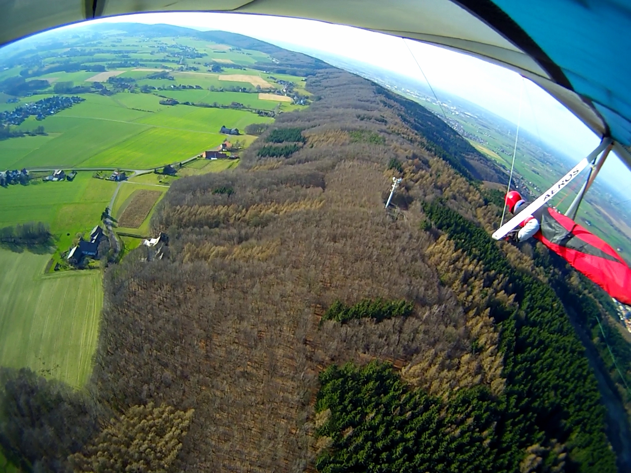 Bei Lübbecke ist der Hang etwa 8km lang nach Südosten ausgerichtet, zudem ist noch ein großer Einschnitt zu überwinden. Im Hangflug geht das nur an sehr labilen Tagen mit optimaler Windstärke mit einer Richtung, die in Bergkirchen schon kritisch östlich ist. Etwas zusätzliche Thermik ergibt sich an solchen Tagen von selbst.